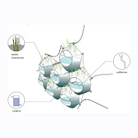 BIO[da]TA is an proposal for the thematic pavillion designed for World Expo 2012 in Yeosu Korea. The project is a living an adaptive building set into the water with floating walkways that move, adjusting to daily with tidal ebb and flow. The main pavillion is partially fixed to the breakwater anchoring the walkways and provide for the main exhibition spaces that provide the visitor with additional perspective on the experience of the Yeosu Bay and oceans on a global scale. The visitor experience allows for a visceral, sensory understanding of the oceans that changes through time as one experiences the moving walkways engaging different parts of the bay. these nodes are meant to be interactive and interpretive data collection points that give real time feedback at user terminals and serve a biological function to help restore the health of the polluted bay impacted by industrial development.